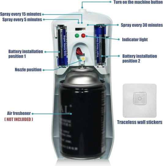 Air Freshener Spray Automatic Aerosol Dispenser Wall Mount/Free Standing Refillable Filling Fragrance for Home Room Office Hotel