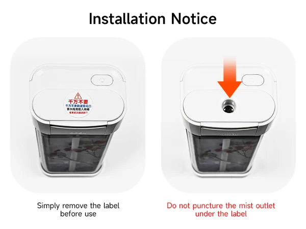 e. Remove the protective film from the top atomizing port (if already done in step①, skip this step)—installation complete!