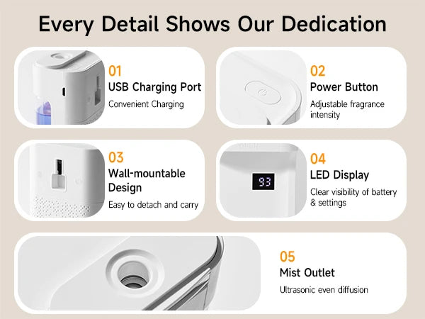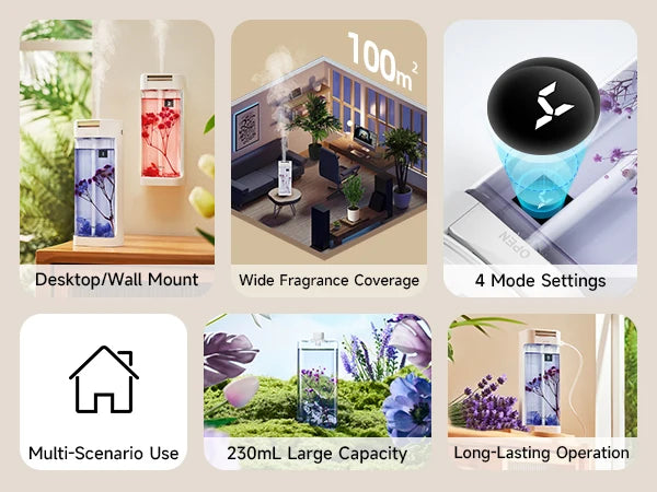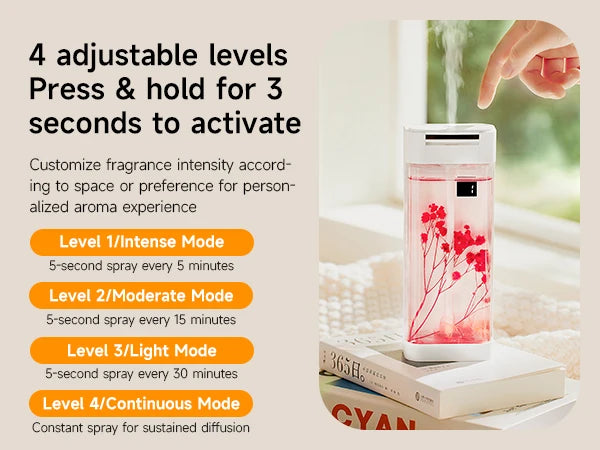 4 Scent Intensity Levels: Adjust fragrance intensity freely with a simple button press.