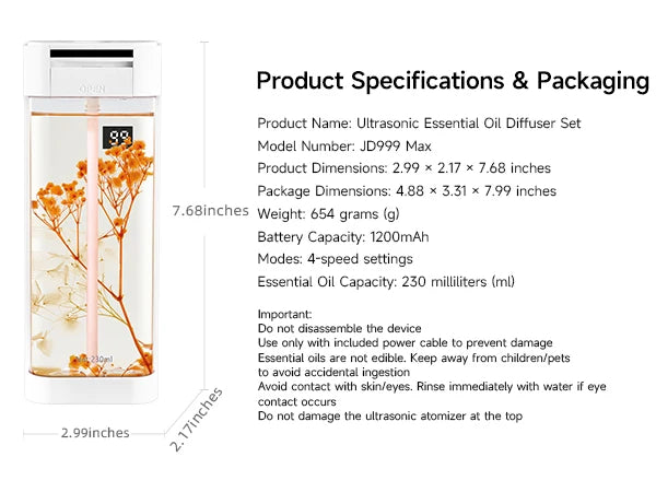 Super Quiet!: Uses ultrasonic atomization technology—virtually noiseless during operation.