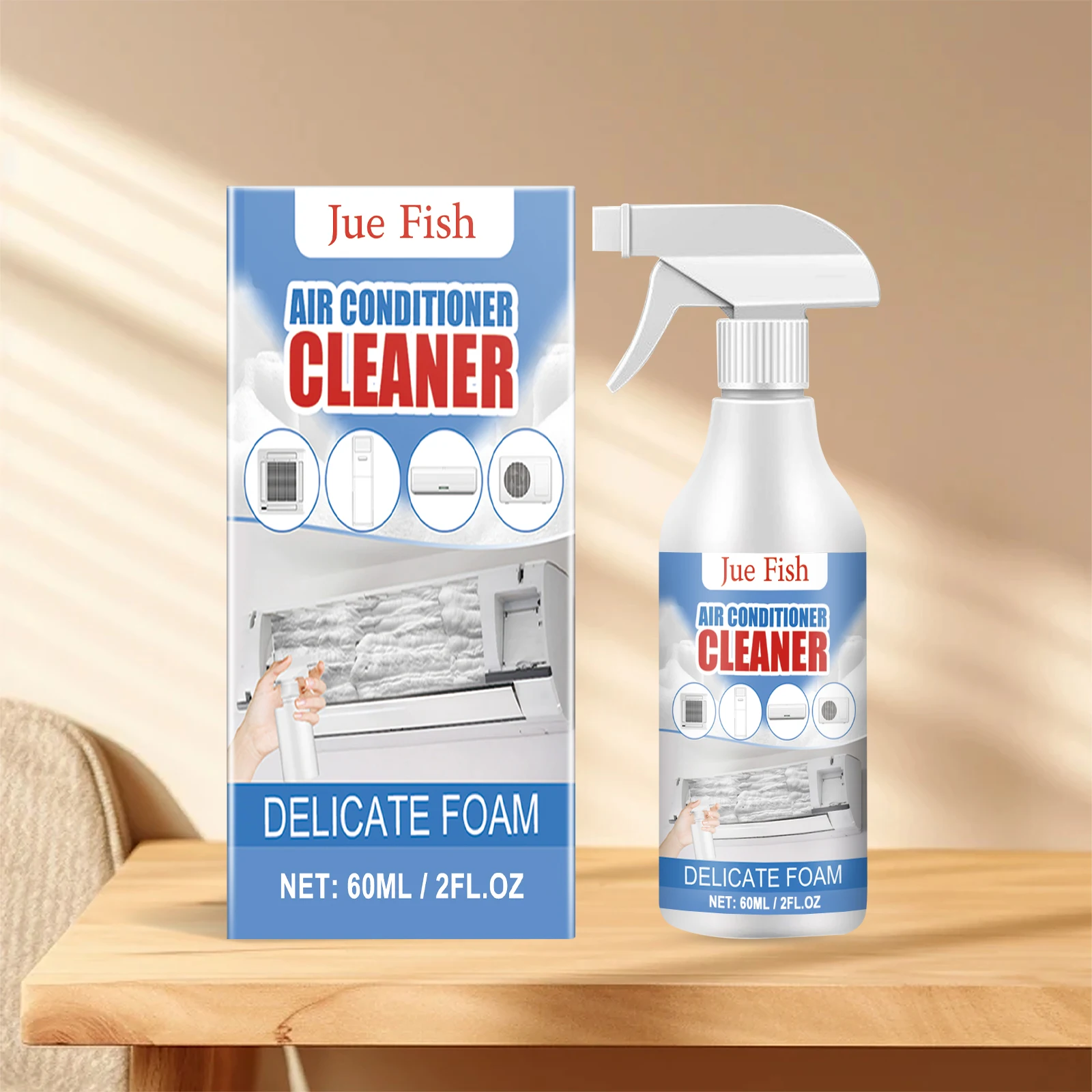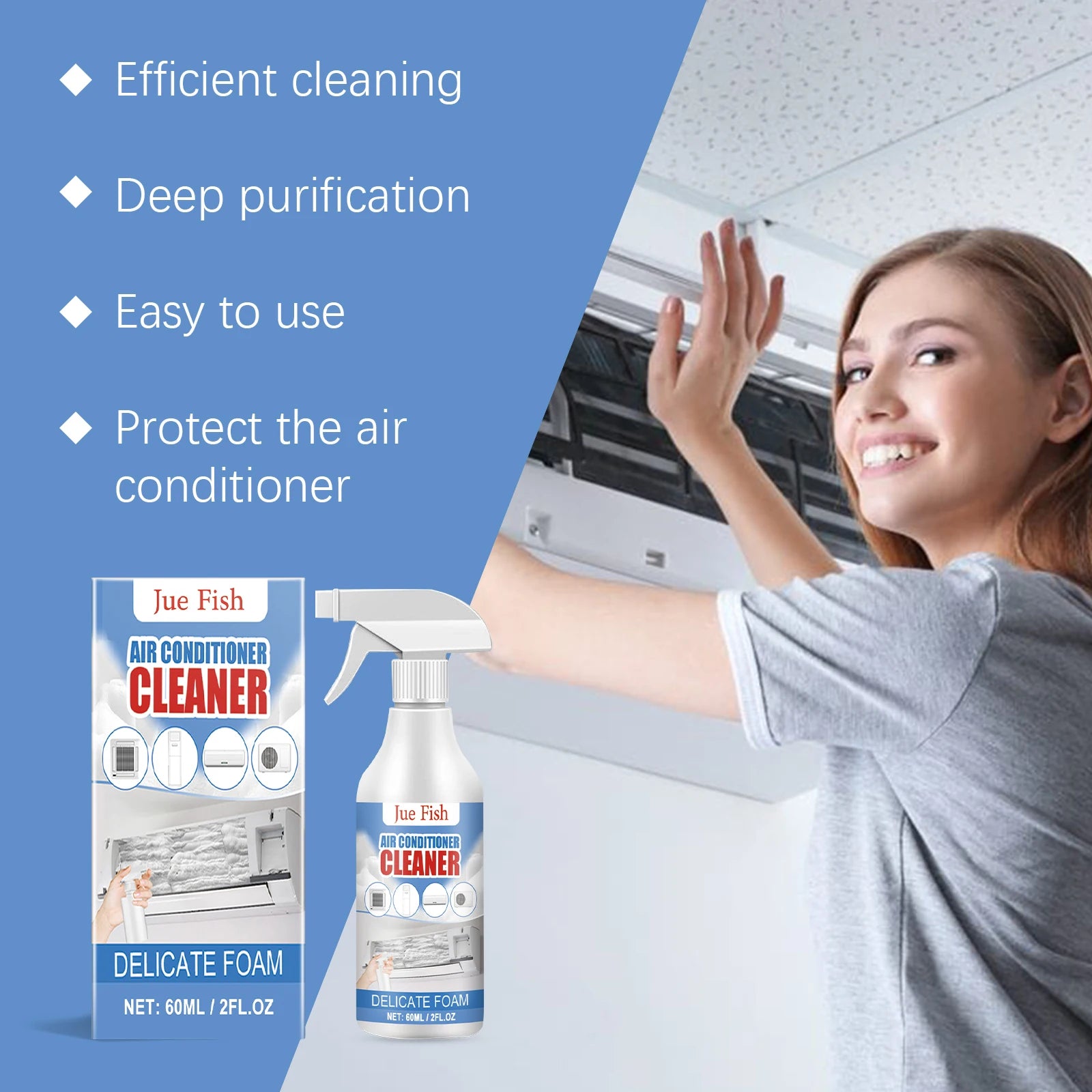 4. Compact and portable: Jue Fish bubble cleaning spray is packed in a compact 60ml bottle with a size of 14 * 3.5cm, which is easy to store and carry. Now, no matter where you are, you can keep the air conditioning clean and fresh.