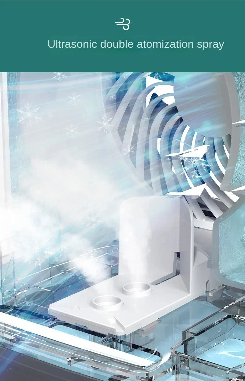 Air Conditioner Portable Fan Desktop Dual Spray Ultrasonic Atomization 3-Speed Mute Air Cooler Night Light Electric Fan for Home