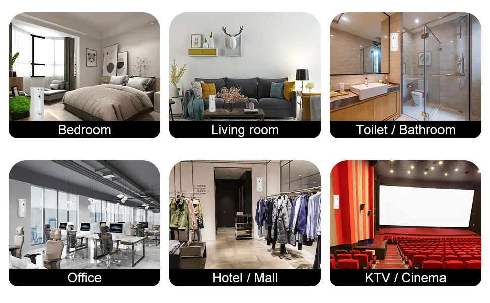 【Automatic Fragrance Freshener 】Automatically spray fragrance into room to purify air and remove smelly odor, You can choose the fragrance frequence (7.5/15min), identify working modes (day, night or 24 hours), no need replace air freshener car up to 60 days.