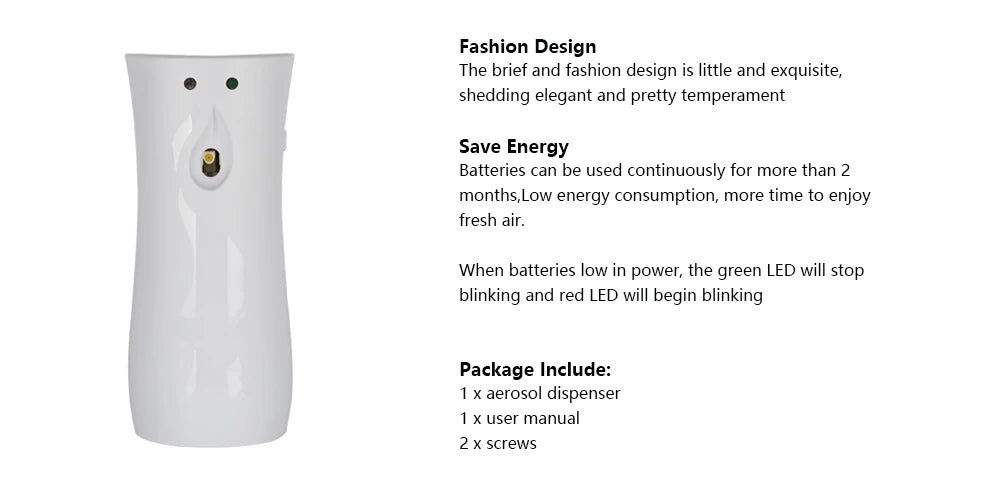 【Battery Powered 】The Fengjie scent spray dispenser requires 2 AA batteries(not included), The red indicator flashes when the battery is low