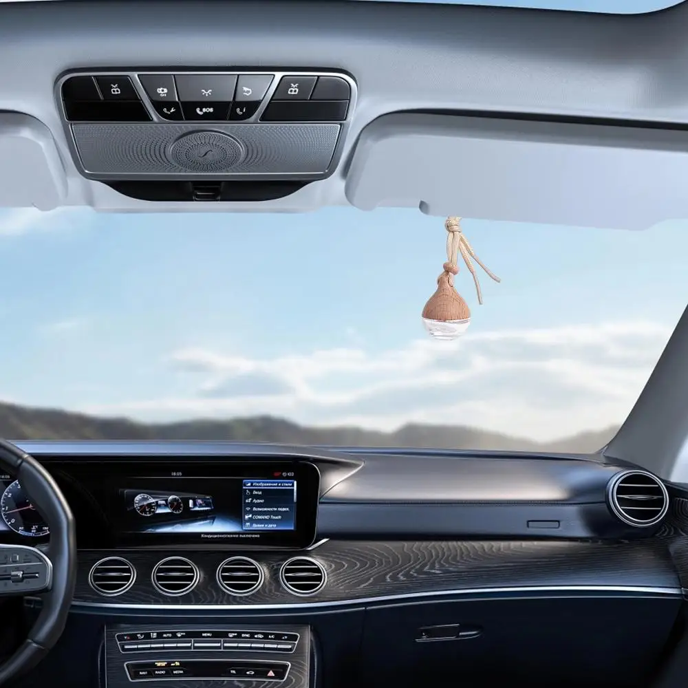 Car Hangings Air Freshener Bottle Diffuser Wooden Glass Hanging Transparent Perfume Bottle Purifying Car Interior Accessories
