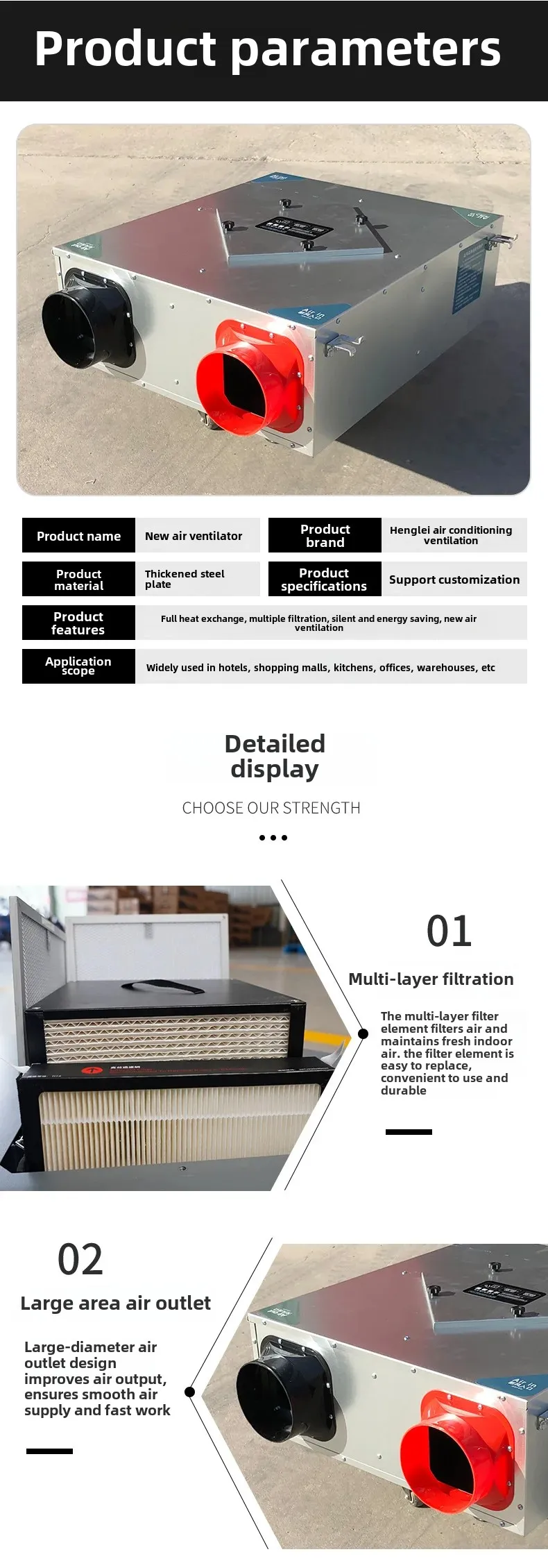 Specifications: Customized fresh air ventilator Consult customer service for details