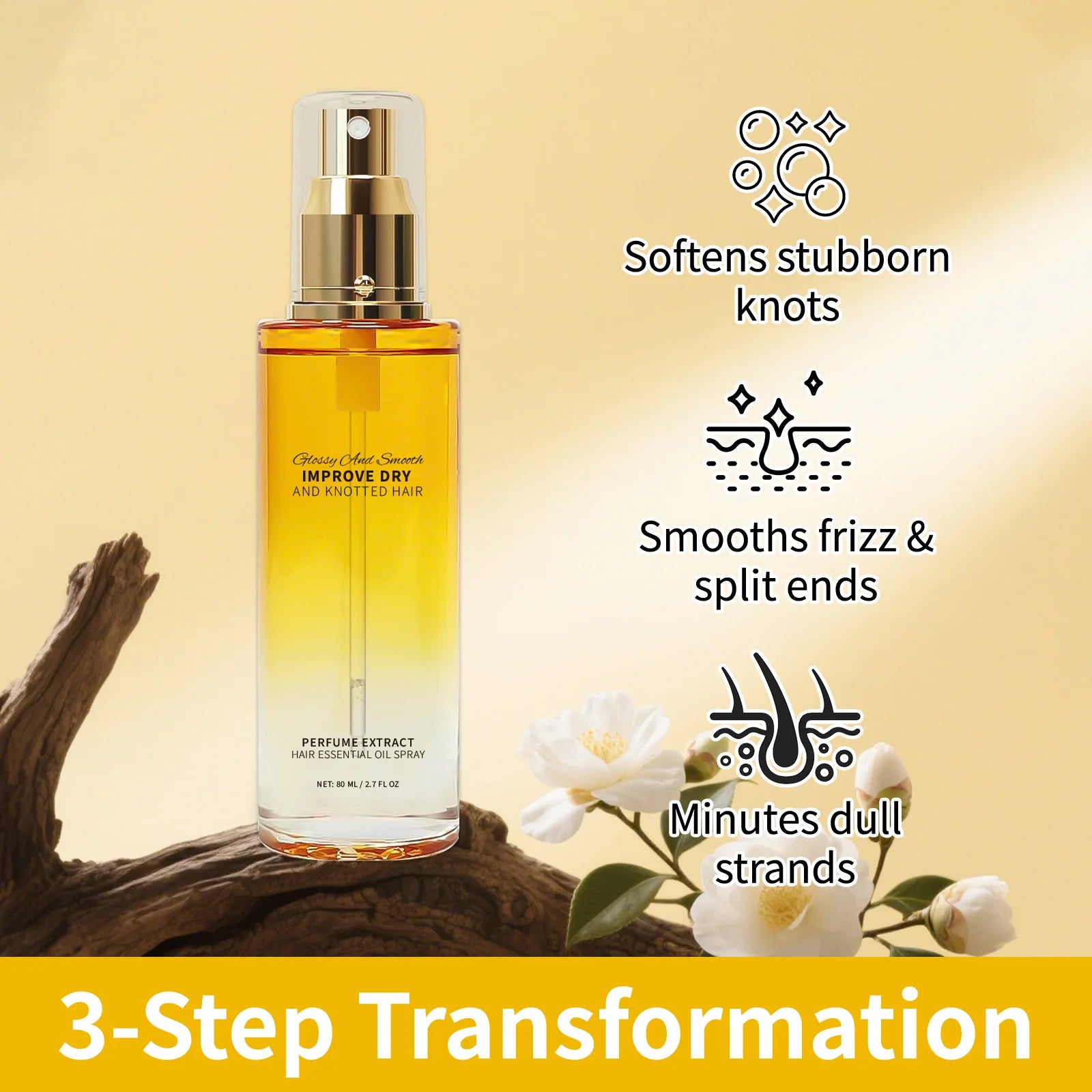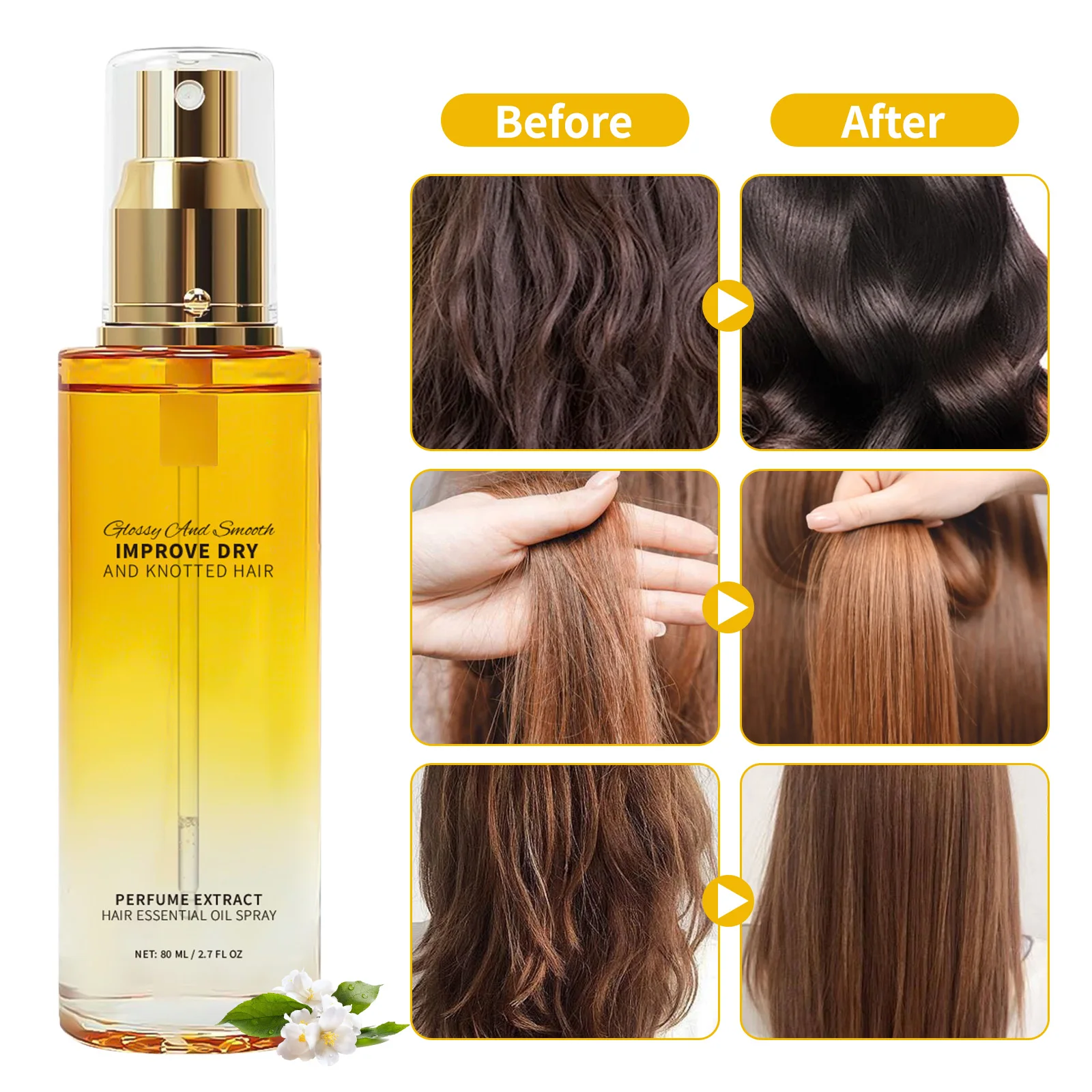 Hair Perfume Essential Oil Spray 80ml Glossy & Smooth Fix Dry & Knotted Hair Frizz Control Heat Protection Prevent Split Ends Nourishing Hair Oil