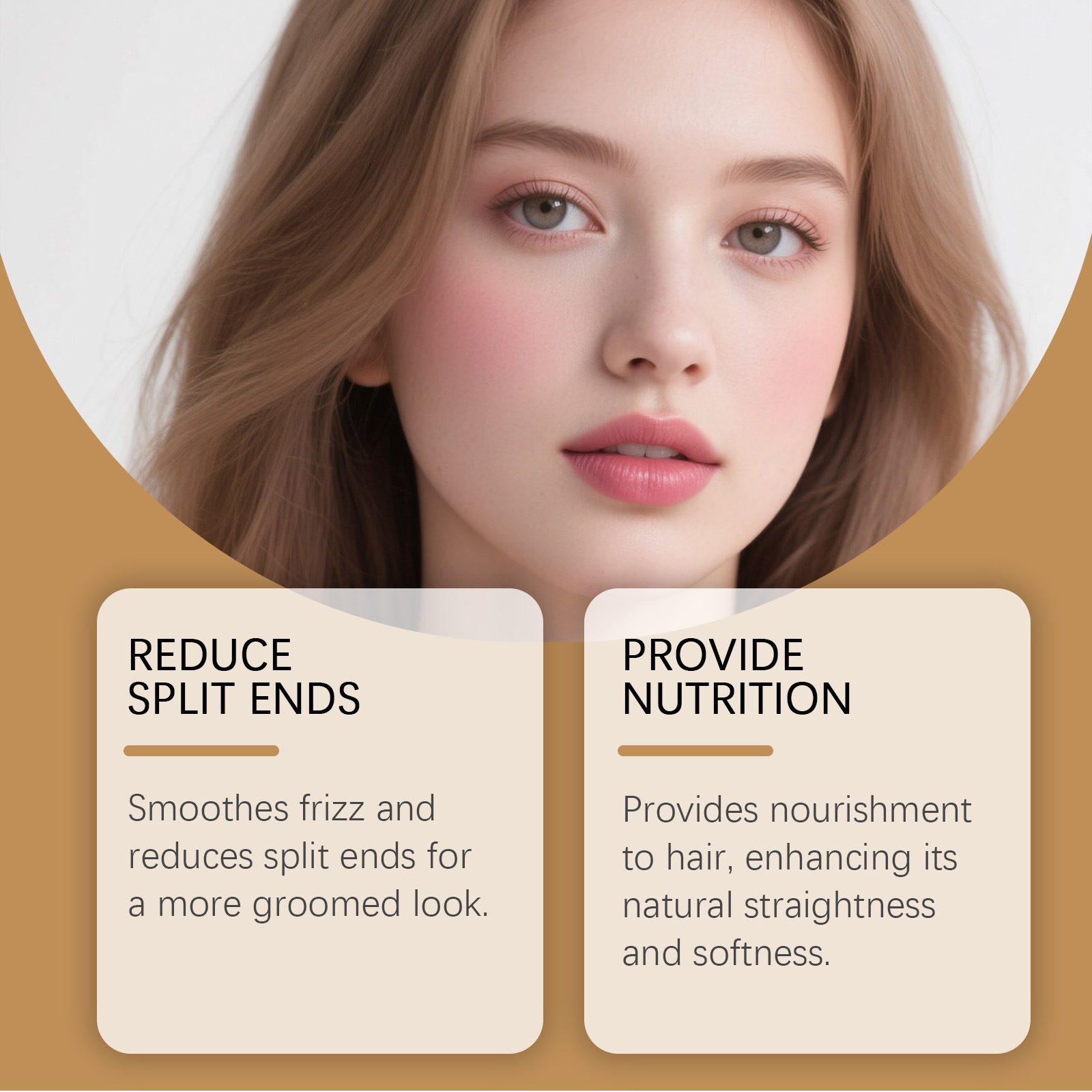 1. Smooth out frizz, radiate silky luster, repair dry and rough hair texture, relieve hair static electricity and curling, make every strand of hair naturally droop, maintain silky and shiny all day long, and comb hair more smoothly.