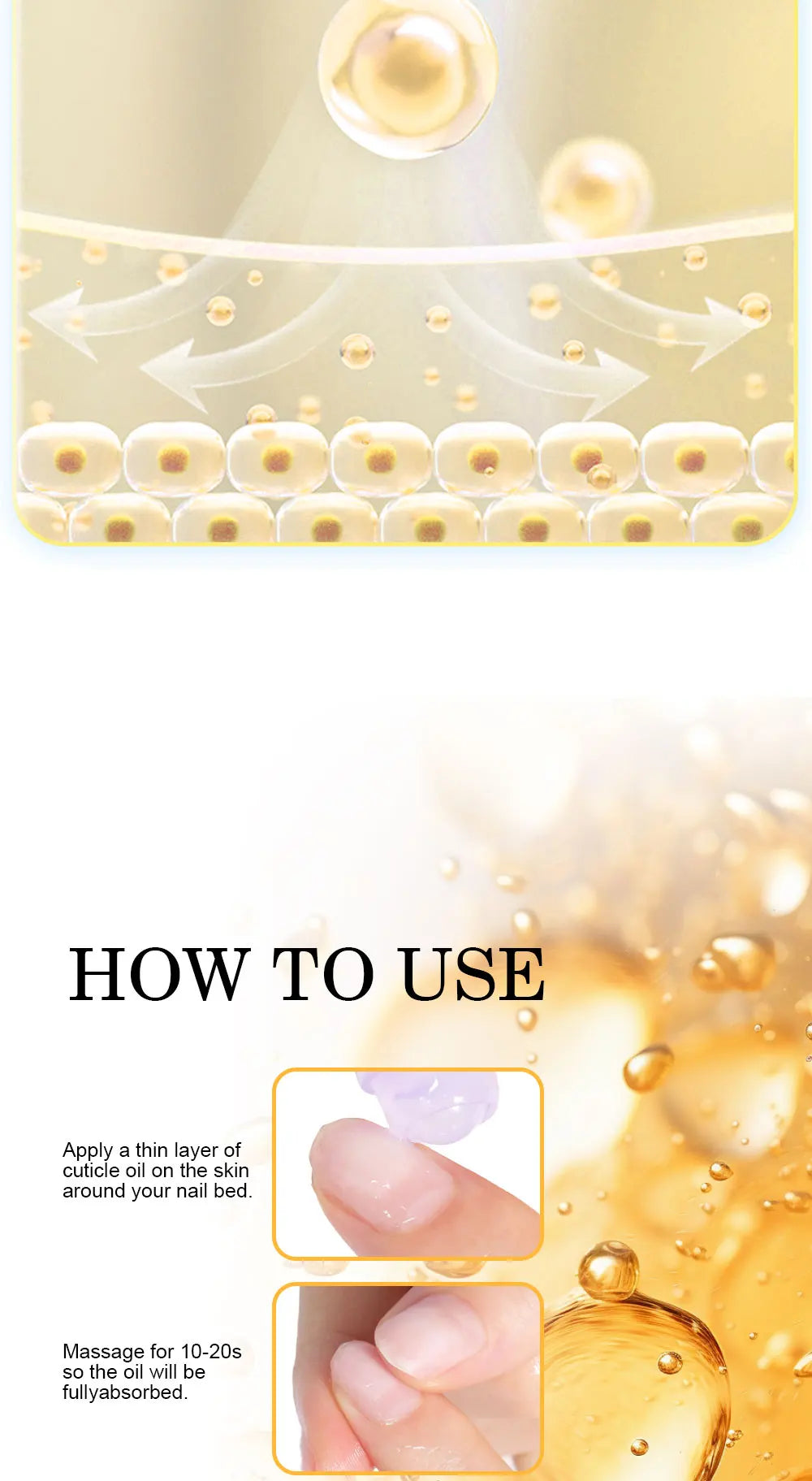 2.Apply oil on the edge of nails and massage it about 3 minutes until fully absorb.