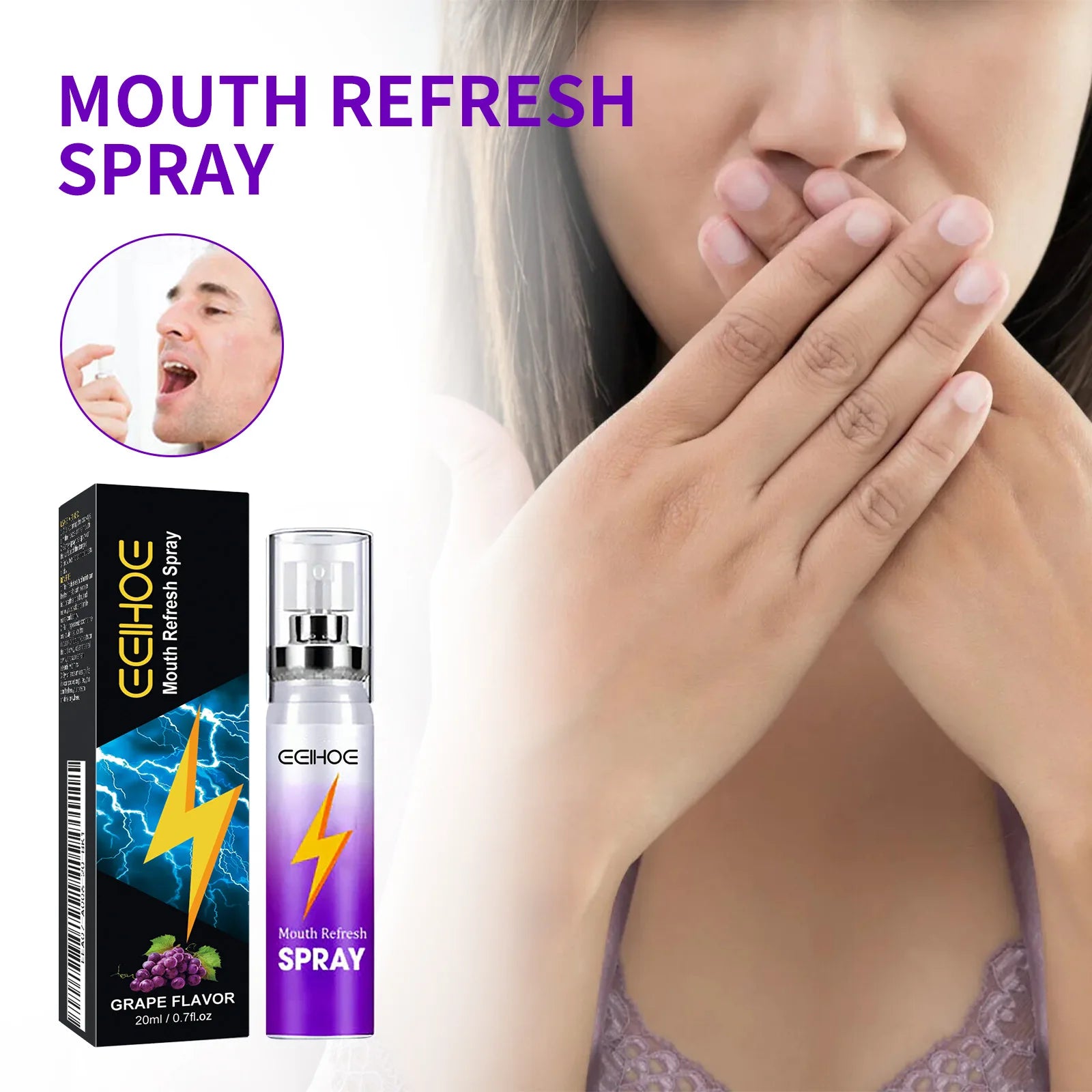 Mouth Freshener Spray Oral Spray Remove Bad Smoke Breath Long Lasting Sweet Fruity Grape Flavor Portable Kissing Cleaning Spray