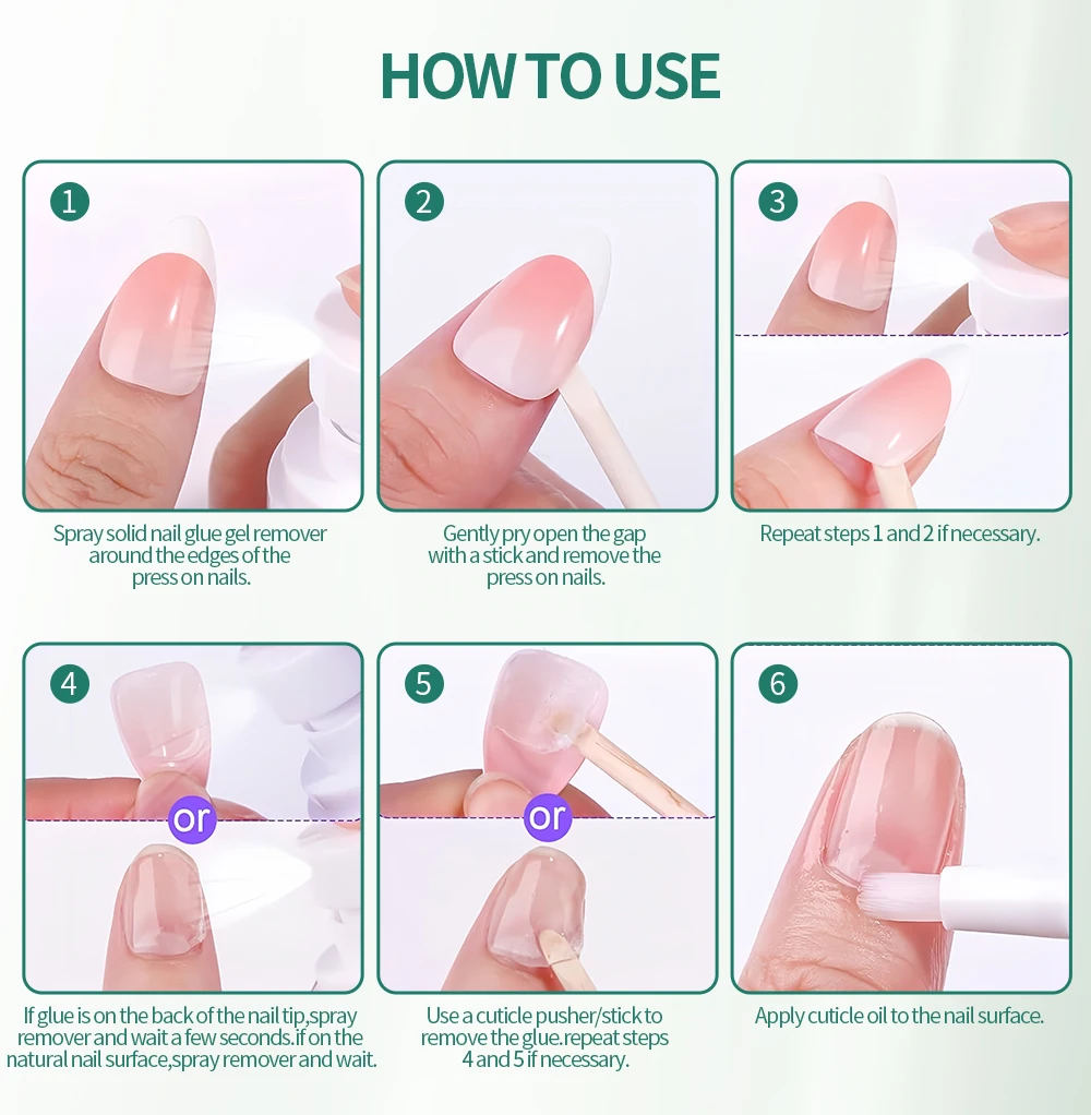 - Fast & Effective Removal: Say goodbye to tedious soaking! Our powerful spray formula quickly breaks down nail adhesive and gel layers, allowing for rapid removal of artificial nails and extensions.