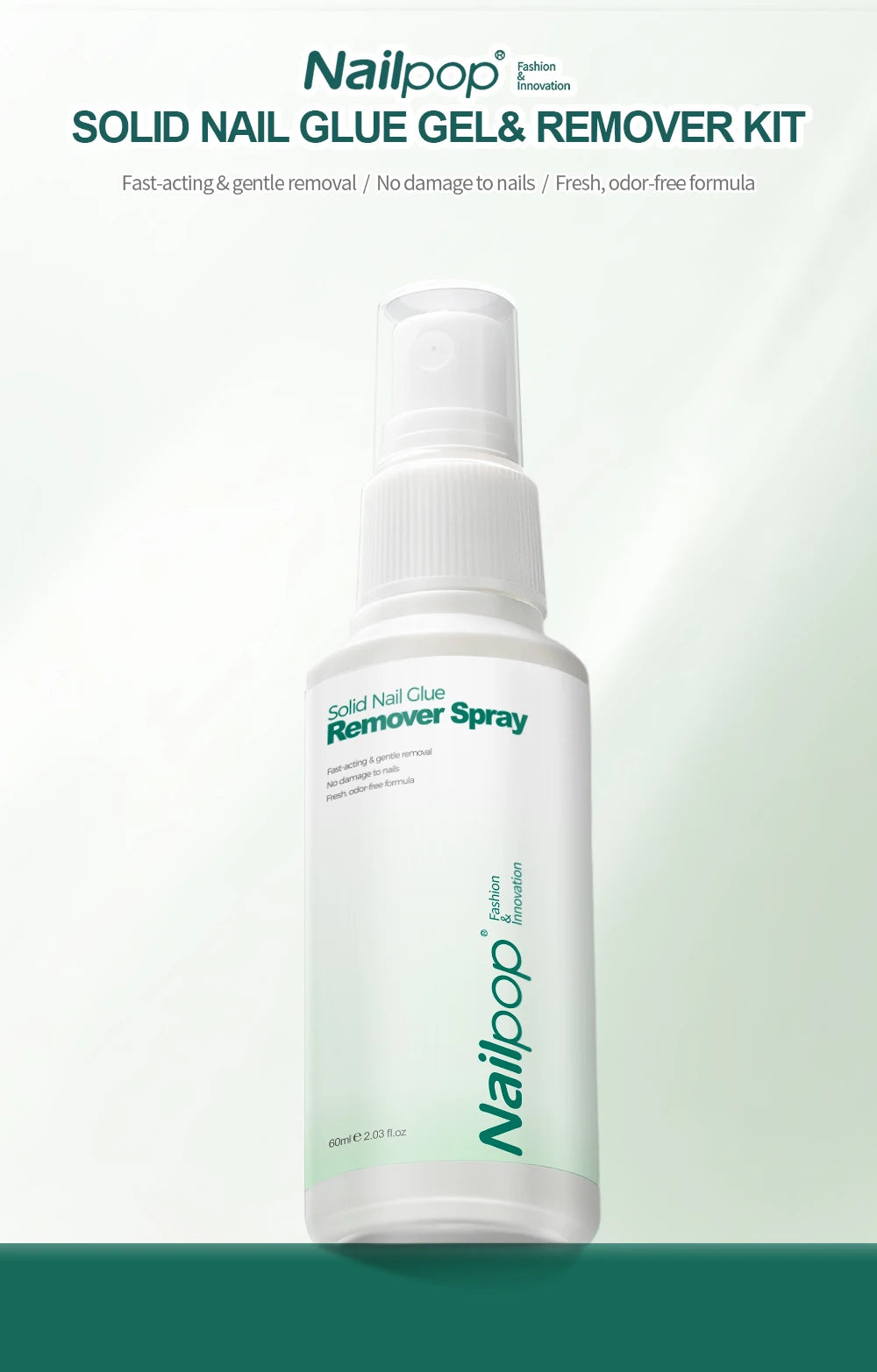 Nailpop 60ml Solid Nail Gel Remover Spray Easily Soften and Removes Press-On Nails Fresh Odorless Gel Fake Nail Tip Remover Tool