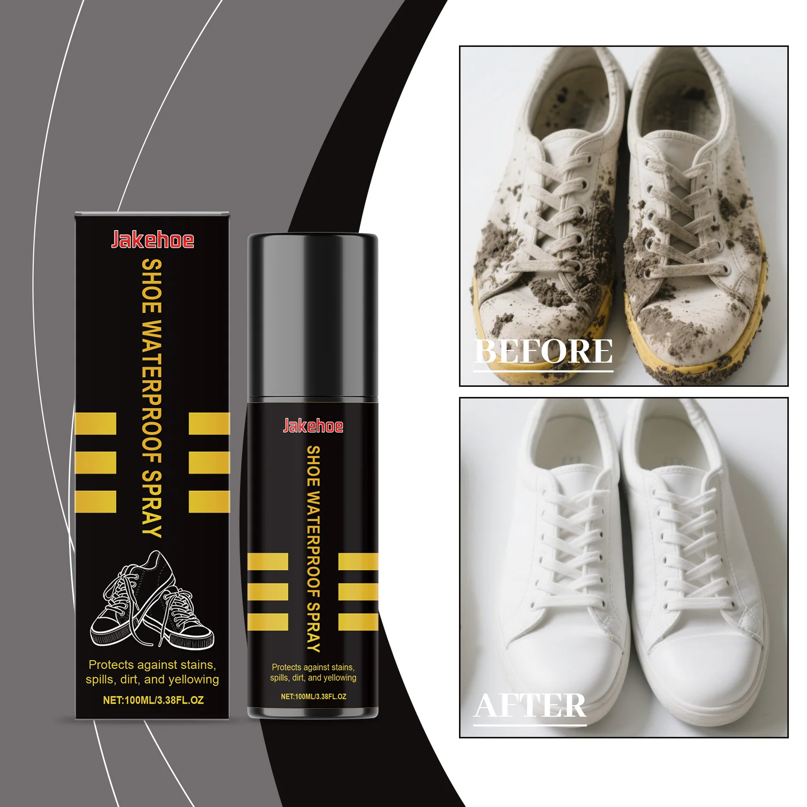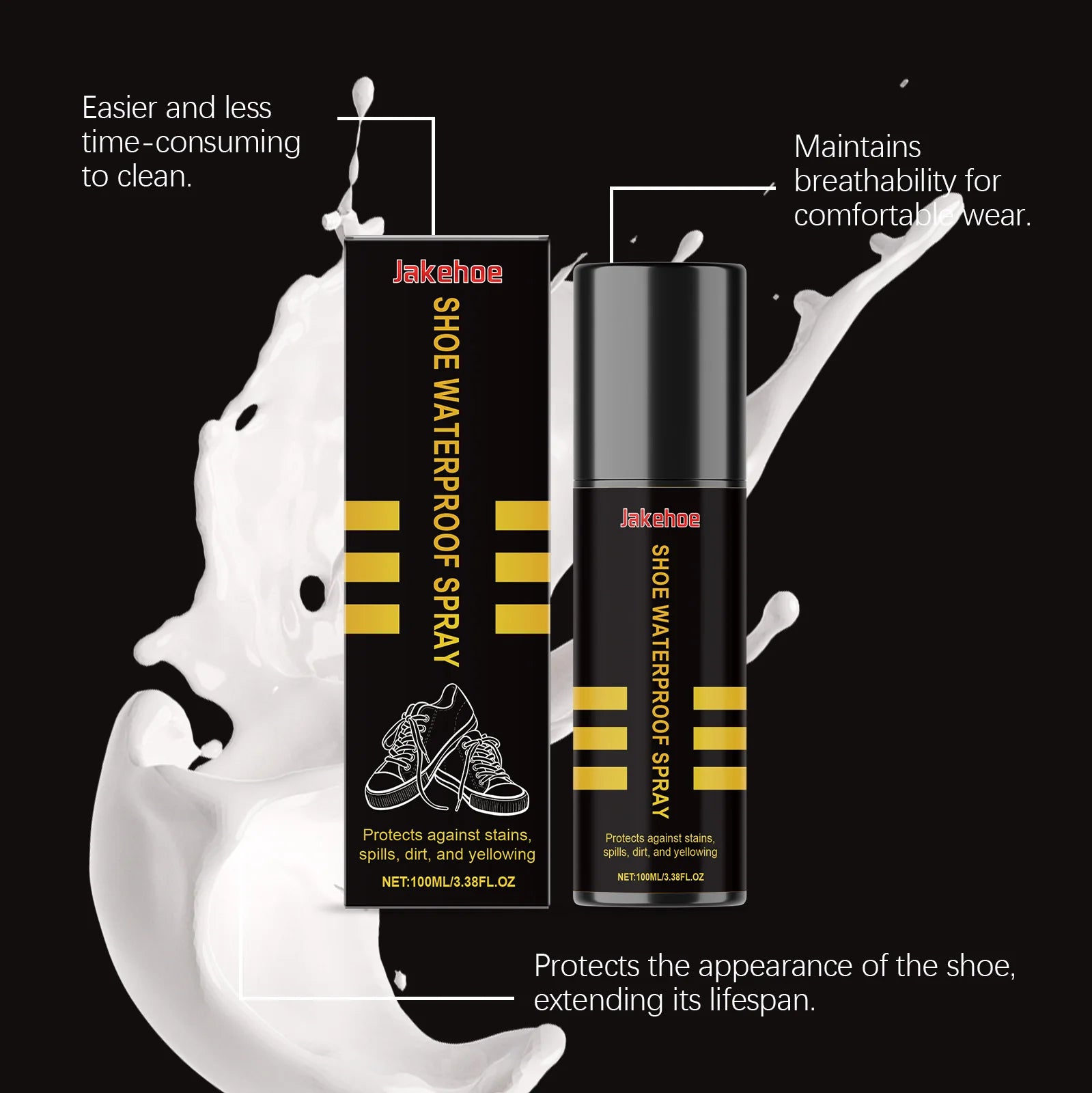 JAKEHOE Shoe Waterproof Spray Effectively Remove Stain Dirt Prevent Yellowing Keeping Shoe Dry Snow-Proof Cleaning Decontamination Spray 100ml Boxed