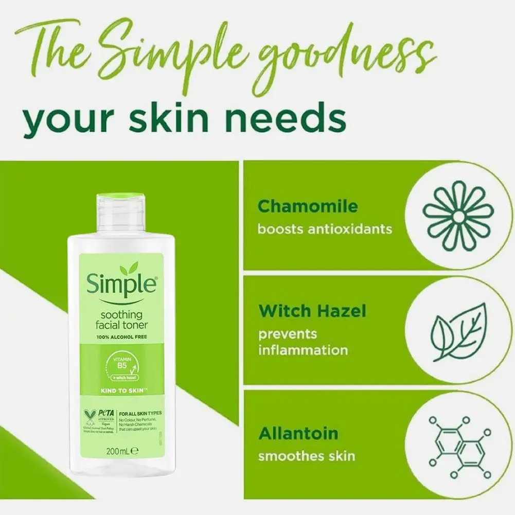 Simple Soothing Toner Long Lasting Moisturizing Gently Calms Soothes Balances Skin PH Softens Stratum Corneum