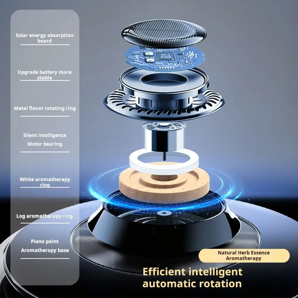 Solar Car Air Freshener Aromatherapy Diffuser with Natural Fragrance Auto Rotating Air Purifier Vehicle Interior Scents Decor