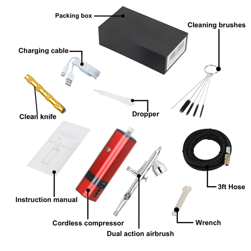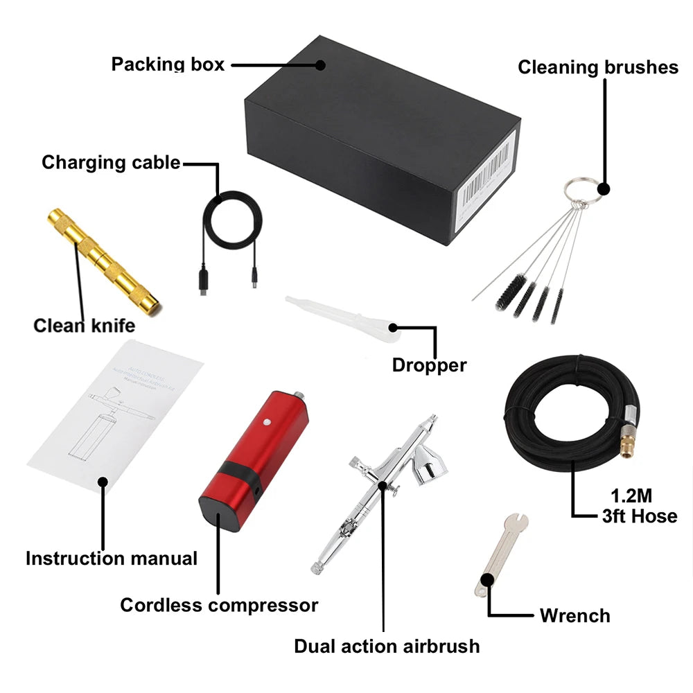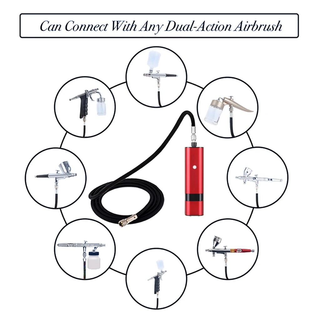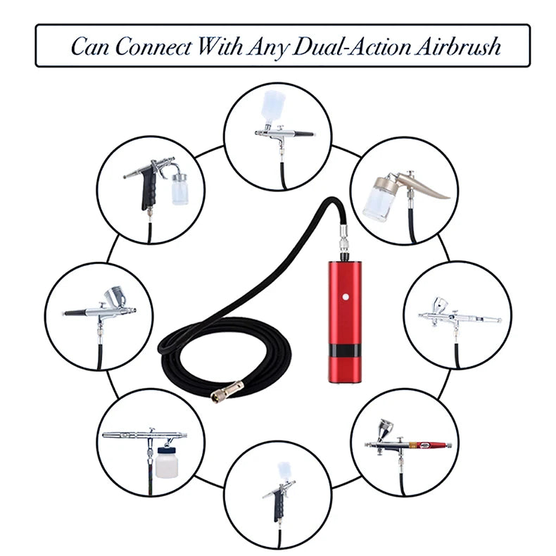 Our cordless airbrush compressor can be use with all the dual action airbrush gun which you love