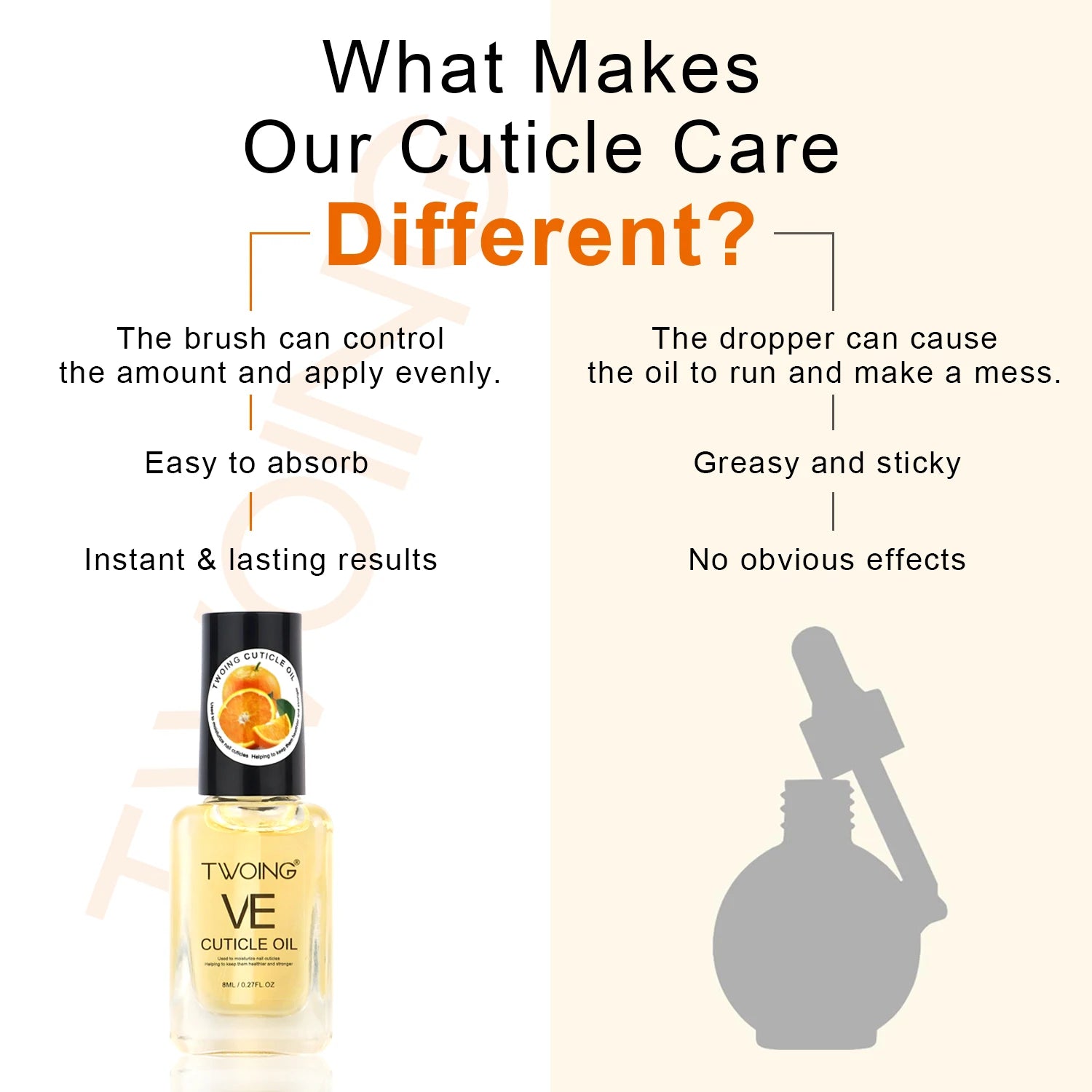 TWOING Vitamin E Nail Care Oils,Nail Cuticle Hydration & Nail Strengthening, Deeply Moisturizing for Healthier,Shinier,Nails 8ML