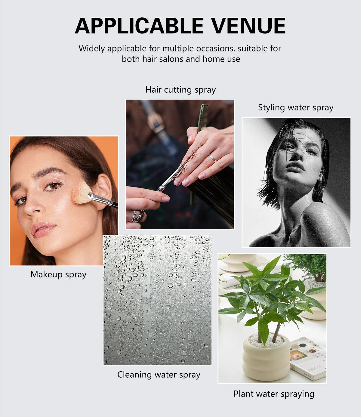 High precision nozzle, can spray out fine mist, meet your hairdressing need.